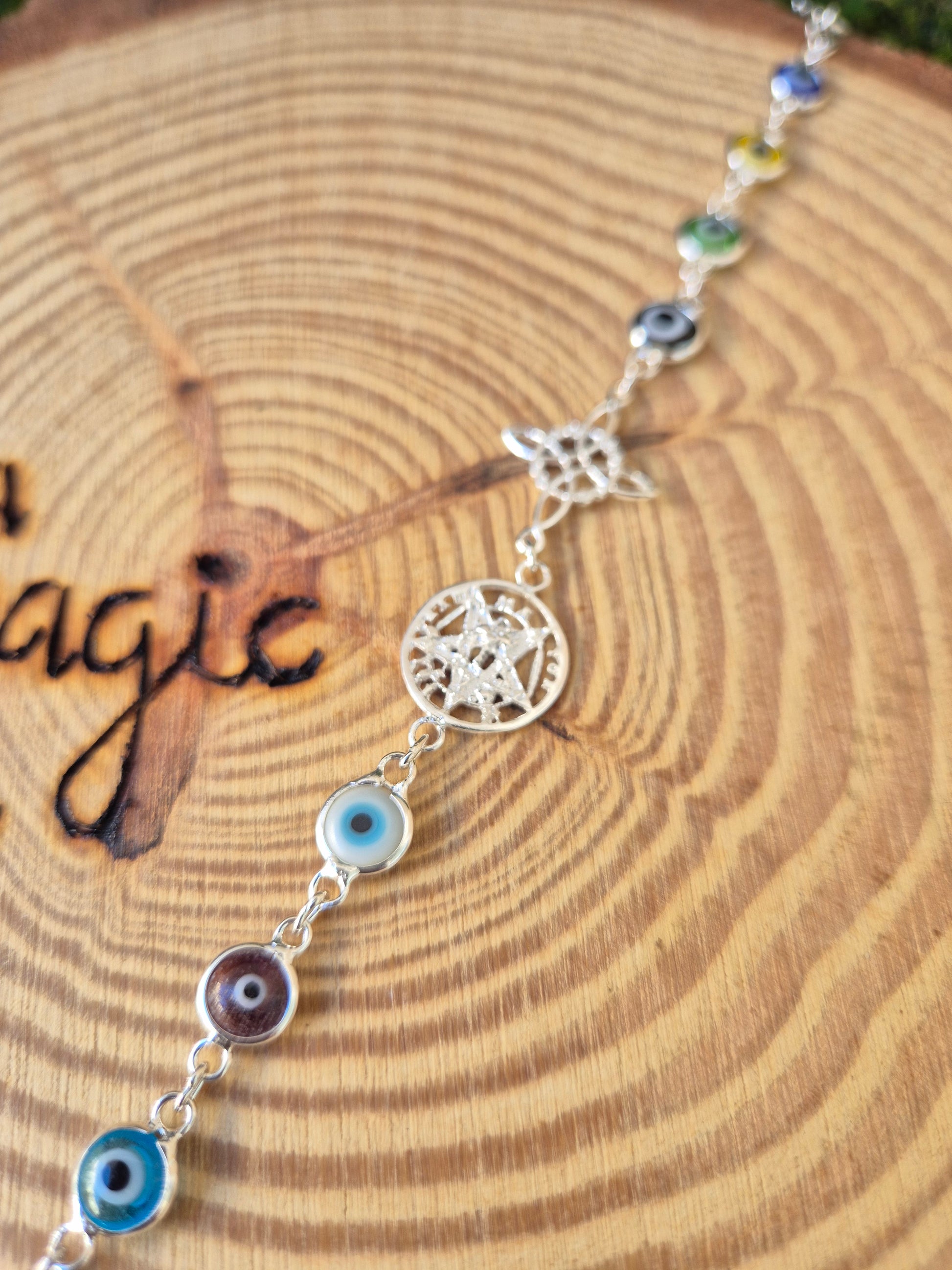 Pulsera Doble Protección Con Ojo Turco colores Plata
