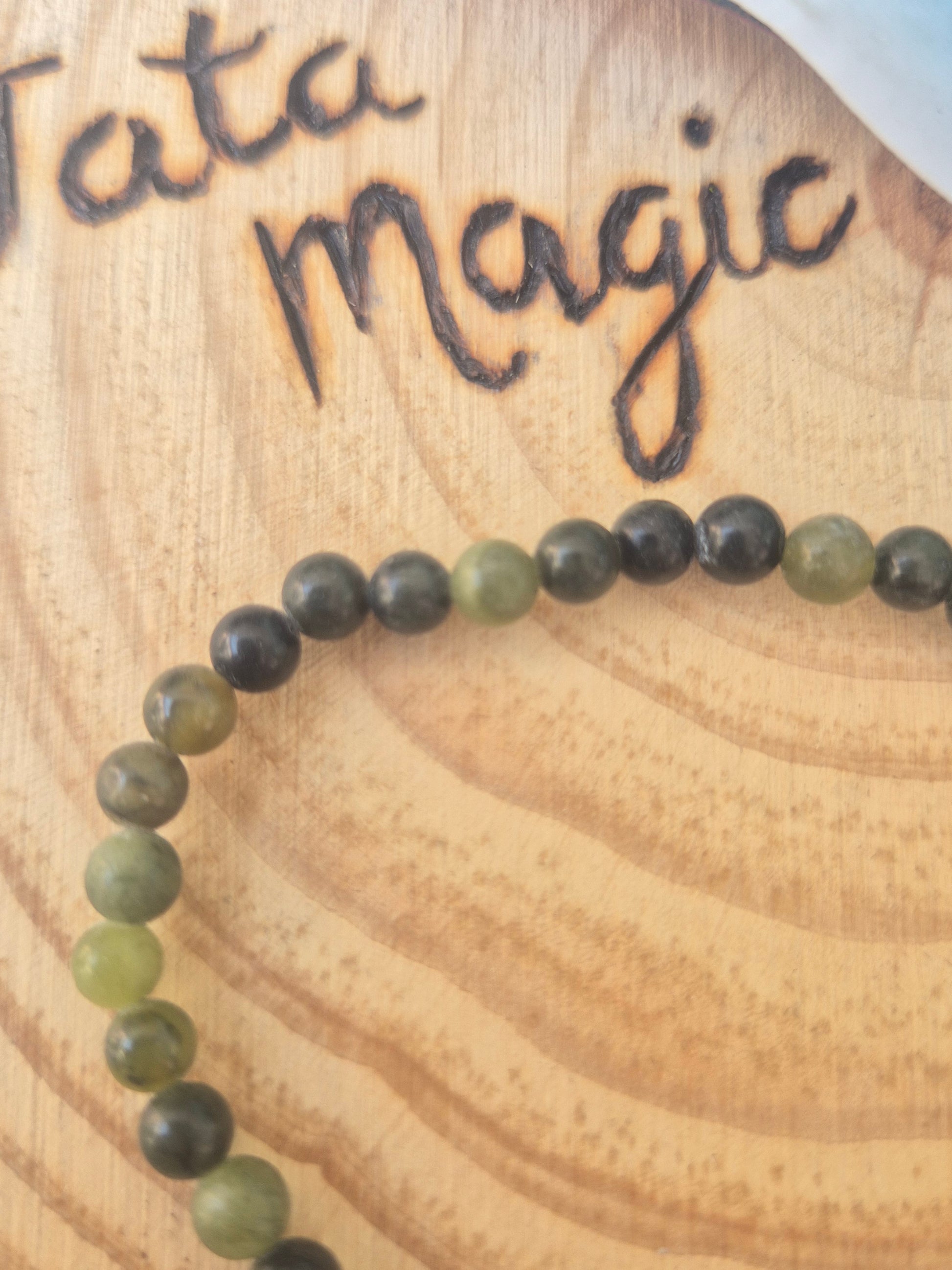 Este jade procede de Vietnam, reconocido por su energía calmante y su intensa vibración espiritual. Llevar esta pulsera ayuda a:
