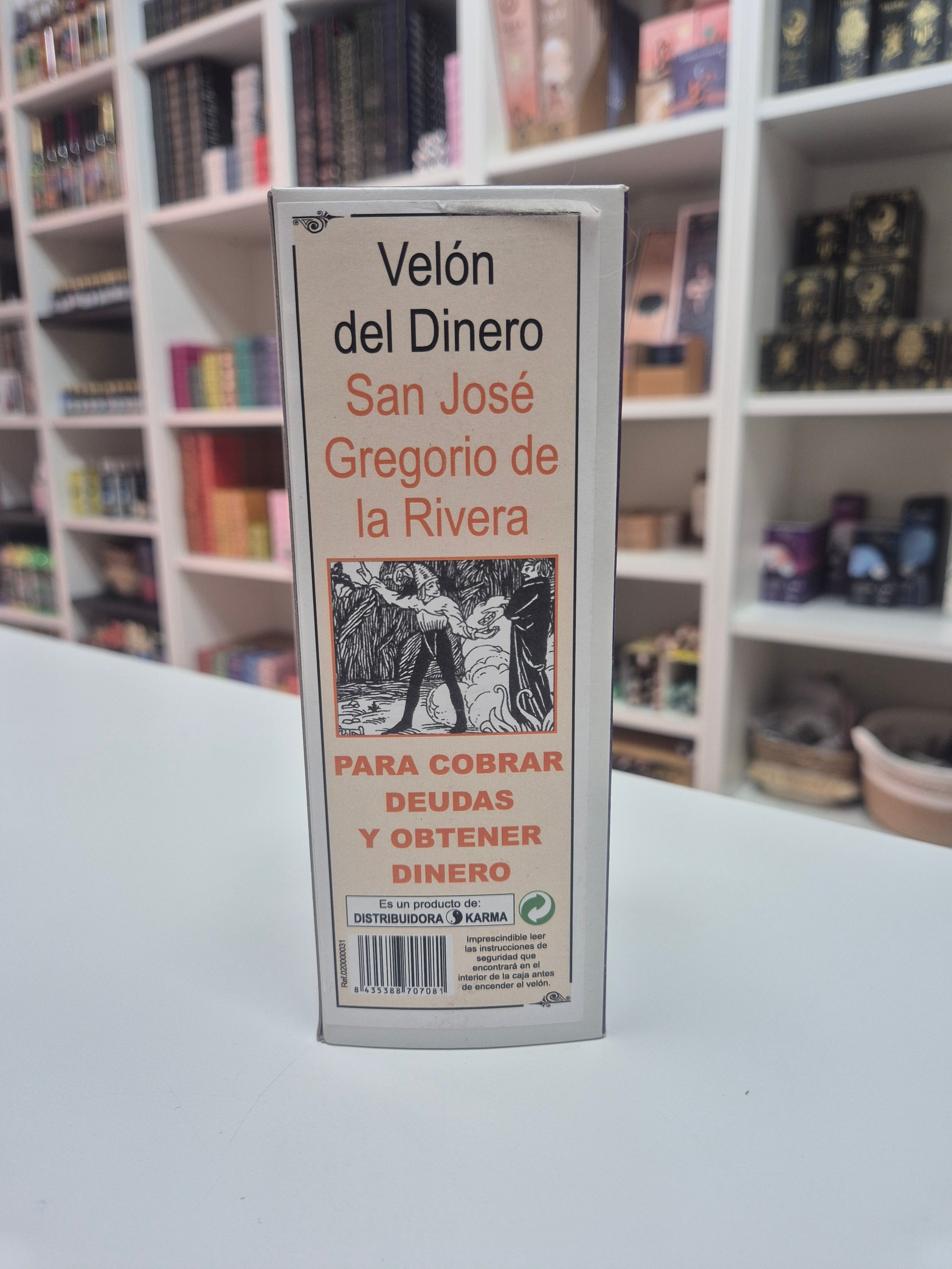 Este poderoso velón es ideal para quienes necesitan recuperar dinero prestado, atraer pagos pendientes o abrir caminos económicos bloqueados. Consagrado a San José Gregorio de la Rivera, protector de la abundancia y la justicia económica, trabaja limpiando los obstáculos energéticos que impiden el flujo del dinero.